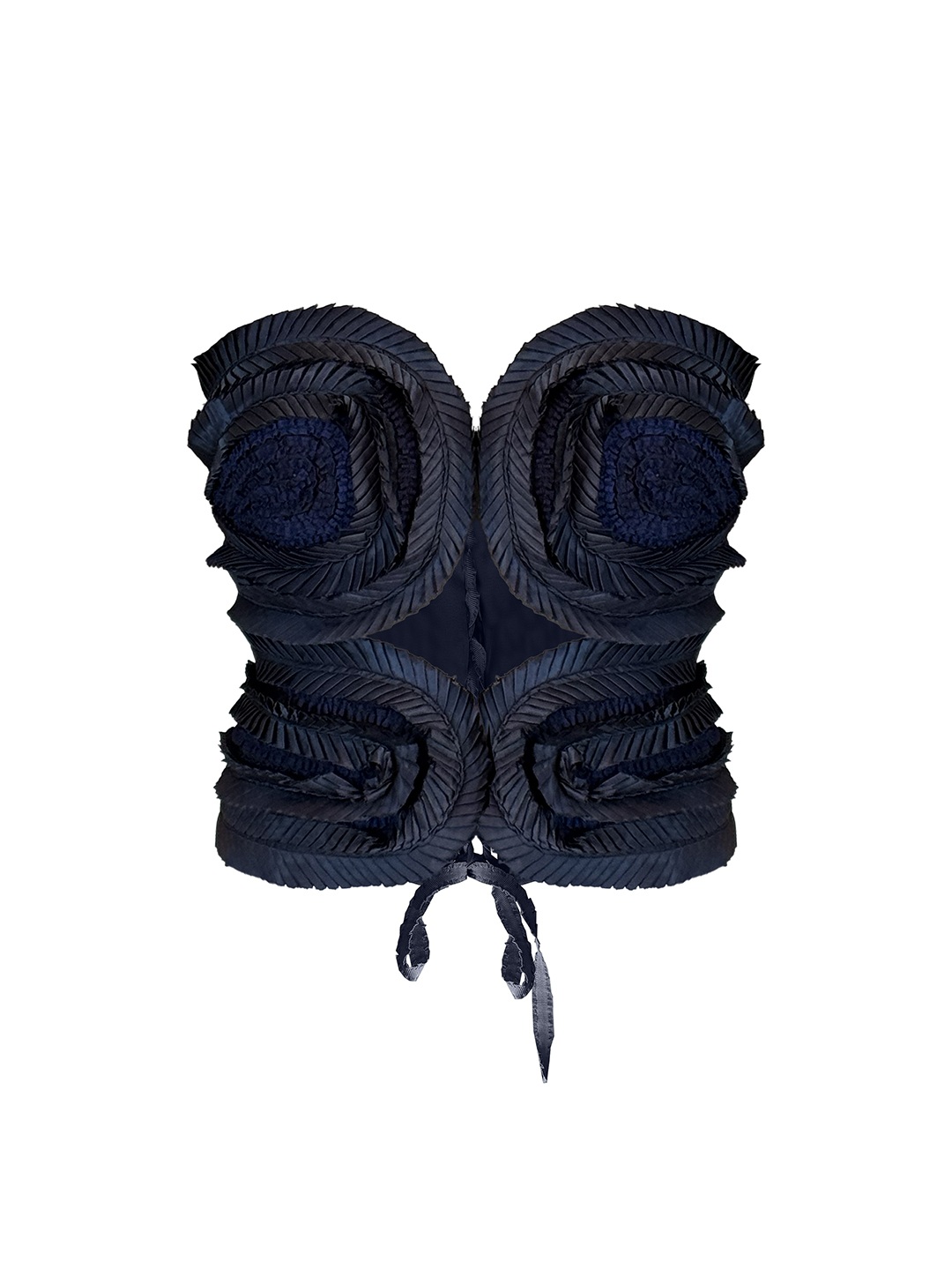 A sculptural handmade top inspired by the shape of an eye, crafted with layered ribbons that create natural, organic textures. Bold, artistic, and highly detailed, Negah forms a statement silhouette while reflecting the beauty of nature in every curve.