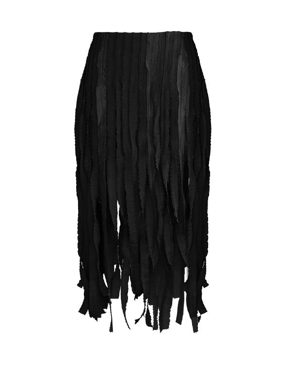 The Shabdar Skirt is a dynamic statement piece that embodies the fluid, textural artistry of Tara Parvaresh. Hand‑constructed from individually cut and arranged fabric strips, it creates movement with every step, revealing a sculptural silhouette that feels both bold and refined. Paired here with the Bisan Top, the Shabdar Skirt offers a modern interplay of structure and flow, making it a standout choice for both evening elegance and contemporary styling.